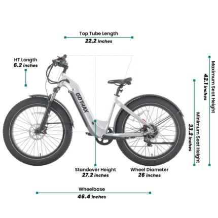 Experience versatile riding with the GOTRAX Tundra Electric Bike, offering a 750W motor, 74-mile range, and 26-inch fat tires for smooth journeys on any terrain.