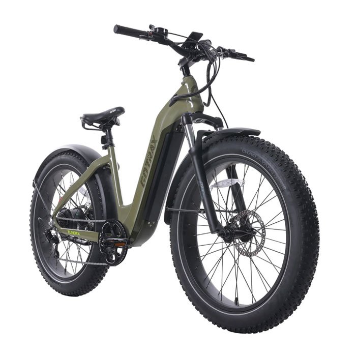 The GOTRAX Alpine Fat Tire Electric Bike is a powerful and versatile eBike designed for both city commuting and off-road adventures. It features a high-performance 500W motor, a long-range removable battery, and wide 4-inch fat tires that provide excellent stability on rough roads, gravel, and trails. With a smooth gear system, reliable braking, and comfortable suspension, the Alpine electric bike delivers a balanced combination of performance, comfort, and durability for everyday riding.