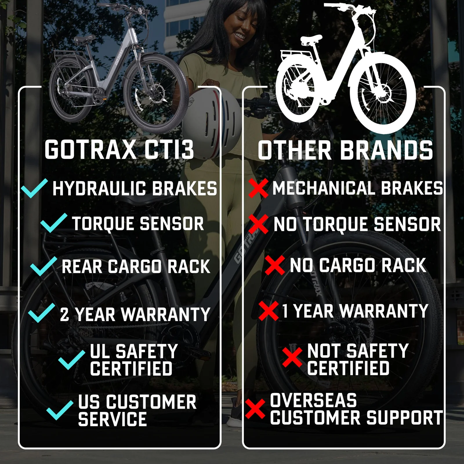 In summary, the GOTRAX CTI 3 Step-Through Electric Bike combines power, range, and comfort, making it an excellent choice for those seeking an eco-friendly and efficient mode of transportation.​