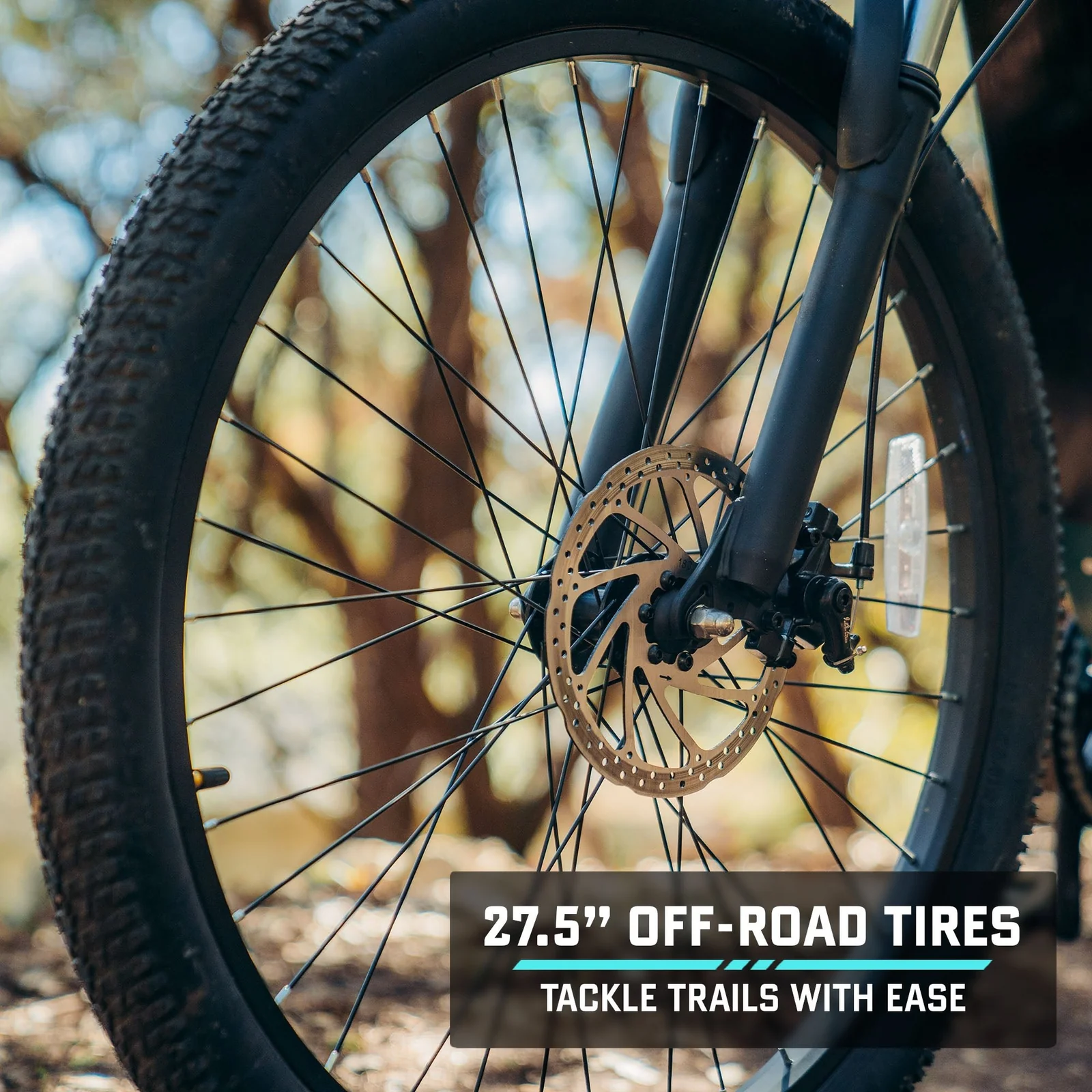 27.5″ Pneumatic Off-Road Tires: Designed to handle diverse surfaces, providing stability and grip on both paved and unpaved paths.​