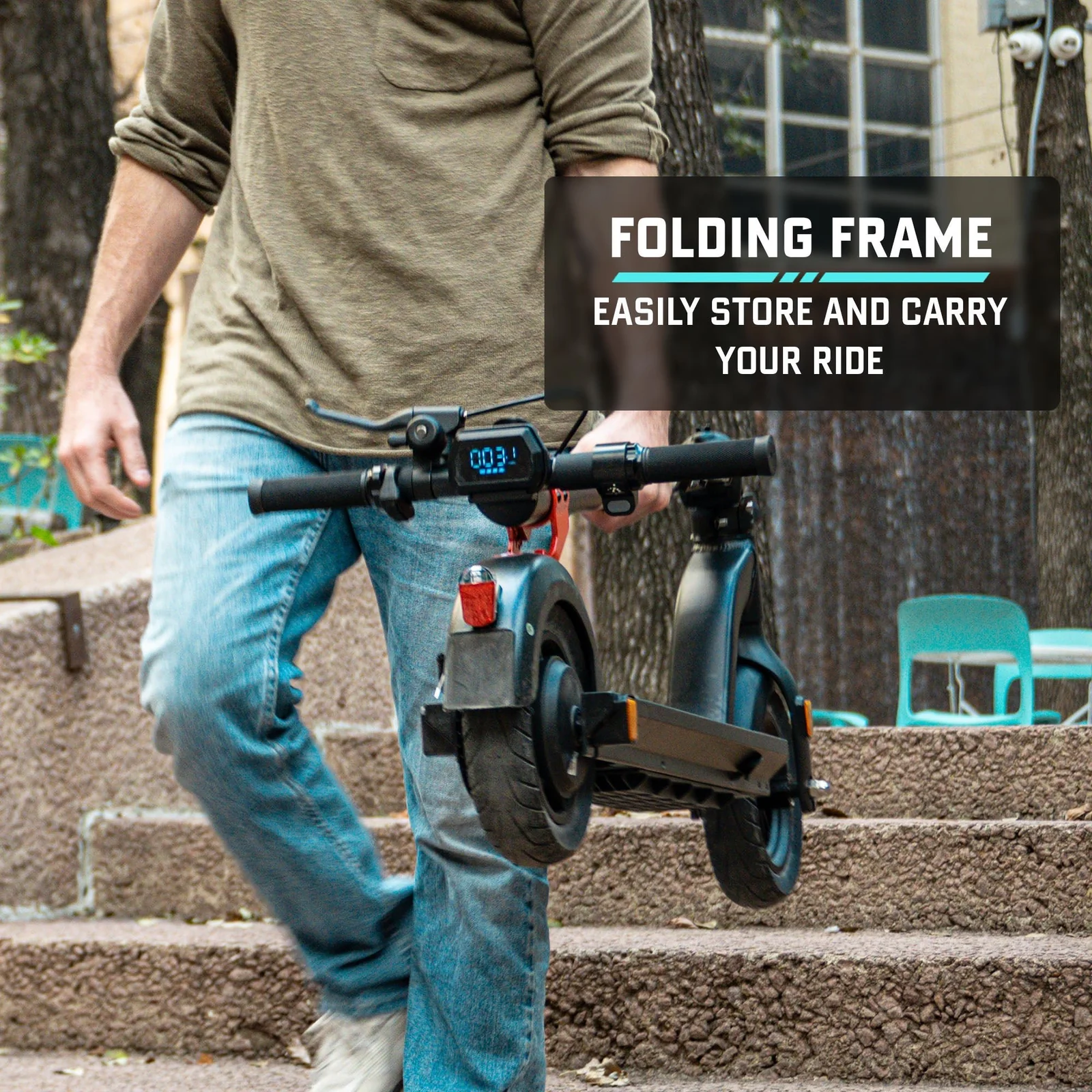 This scooter is designed with portability in mind. Its folding frame makes it easy to carry on public transportation or store in small spaces. Despite its light design, it supports riders up to 264 lbs, making it suitable for a wide range of users.