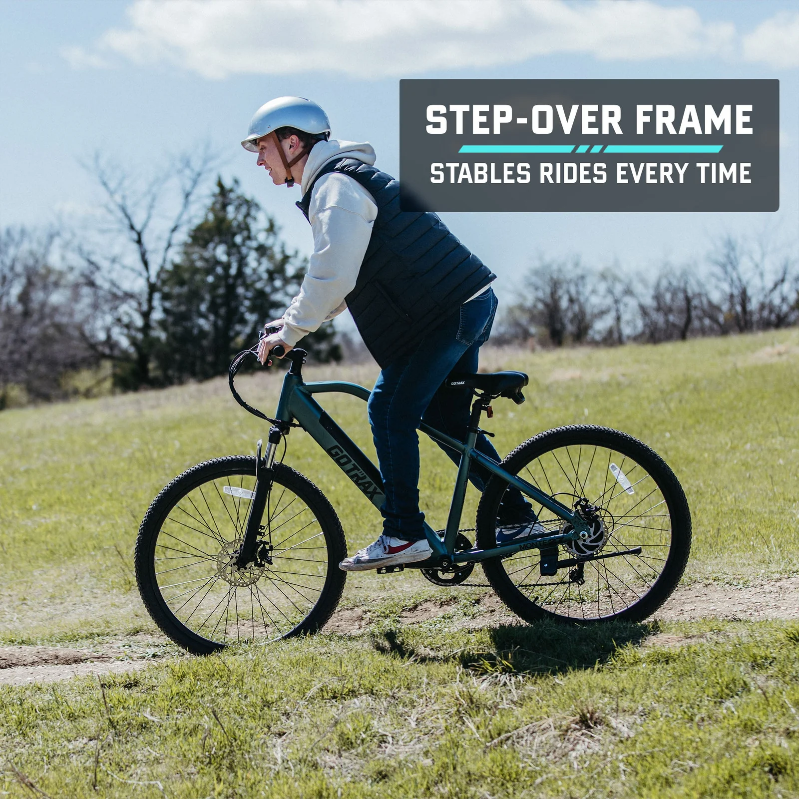 The GOTRAX Monte Electric Bike combines a 350W motor, 29″ tires, and front suspension for smooth, efficient urban commuting.