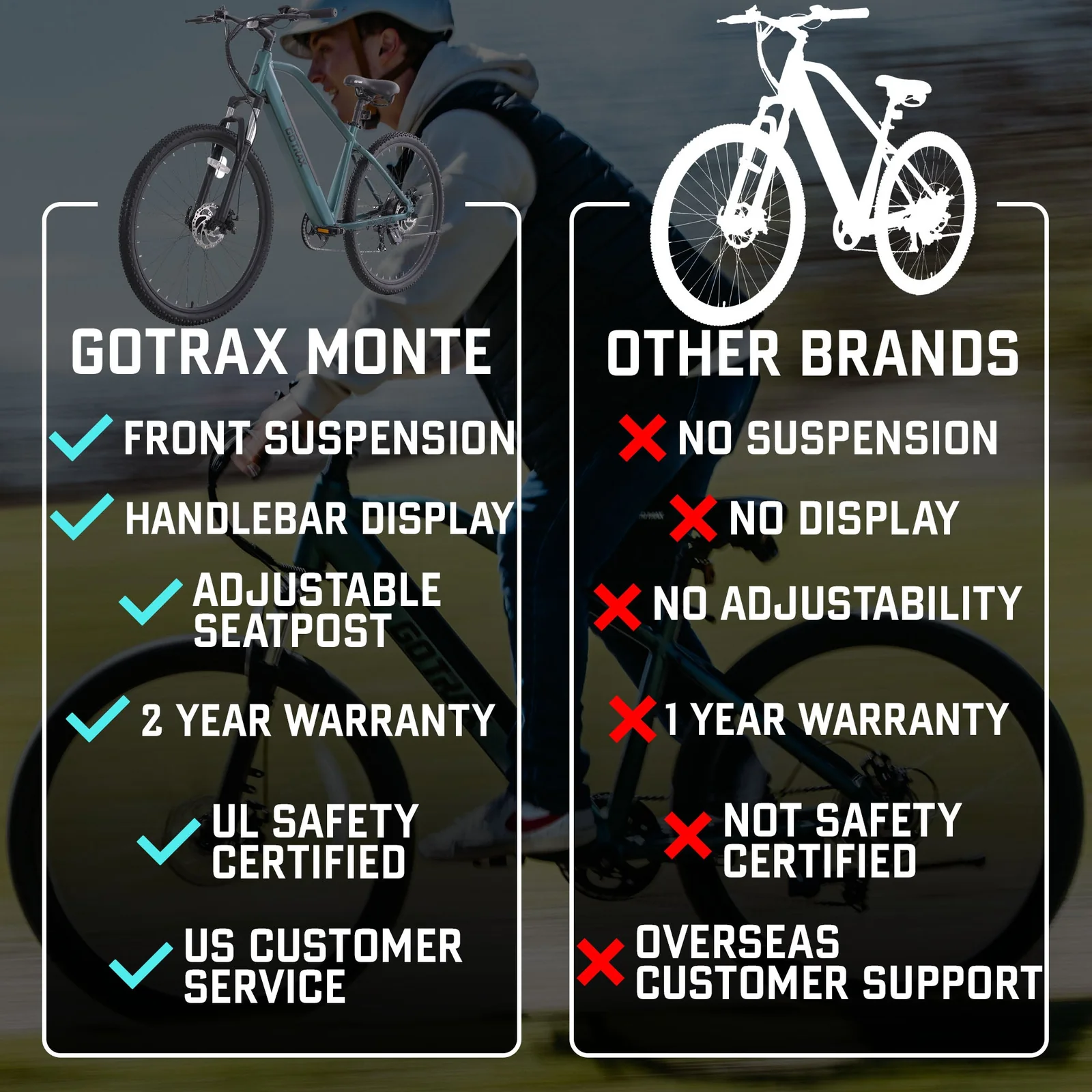 The GOTRAX Monte Electric Bike combines efficiency, comfort, and affordability, making it an excellent choice for daily commuting and urban exploration.