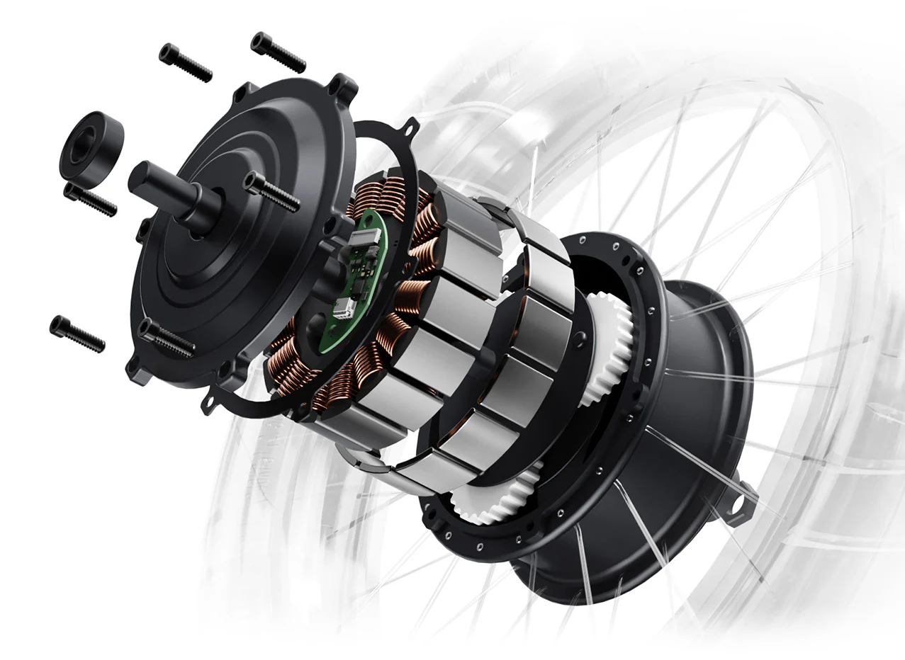| Motor | 350W brushless geared hub motor. |