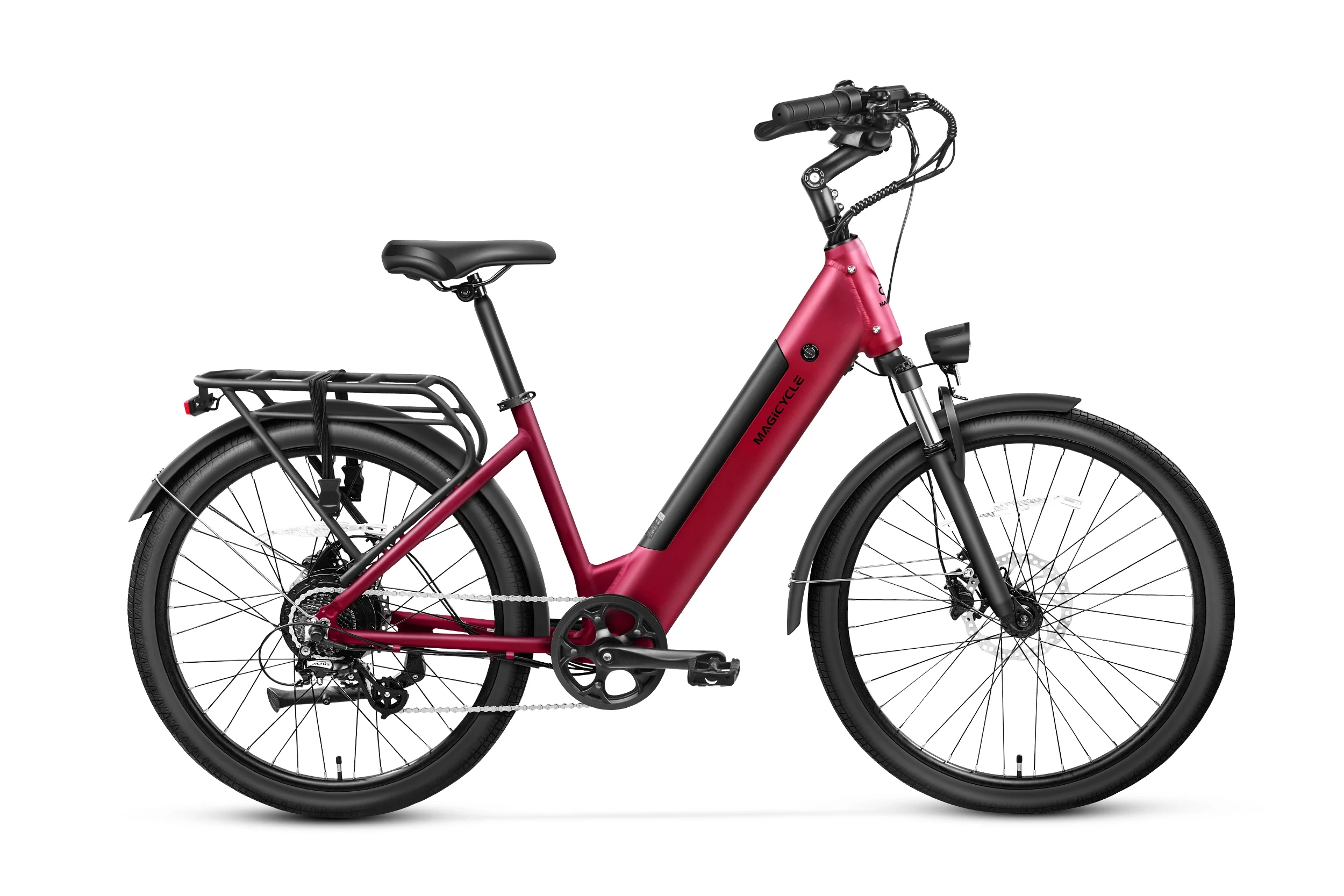The Magicycle CT‑1 is a sleek and agile commuter e‑bike designed for urban streets. Weighing just 54 lb and built on a low step‑through frame, it makes mounting and dismounting easy. With a torque sensor, it responds intuitively to your pedaling and performs smoothly. The powerful 750 W motor (1,100 W peak) helps you reach speeds up to 28 mph, while the 48 V 15 Ah battery offers up to 60-mile range per charge. It also comes equipped with hydraulic disc brakes and a Shimano 7-speed drivetrain, making it an ideal companion for daily commutes.