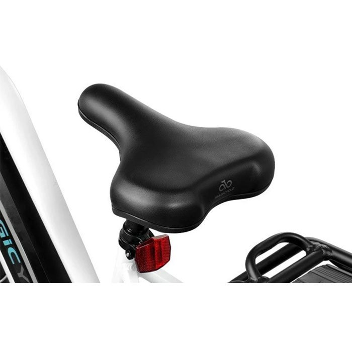 Memory-foam comfort saddle with shock-absorbing rails and waterproof cover—model-specific fit for a smoother Magicycle ride.