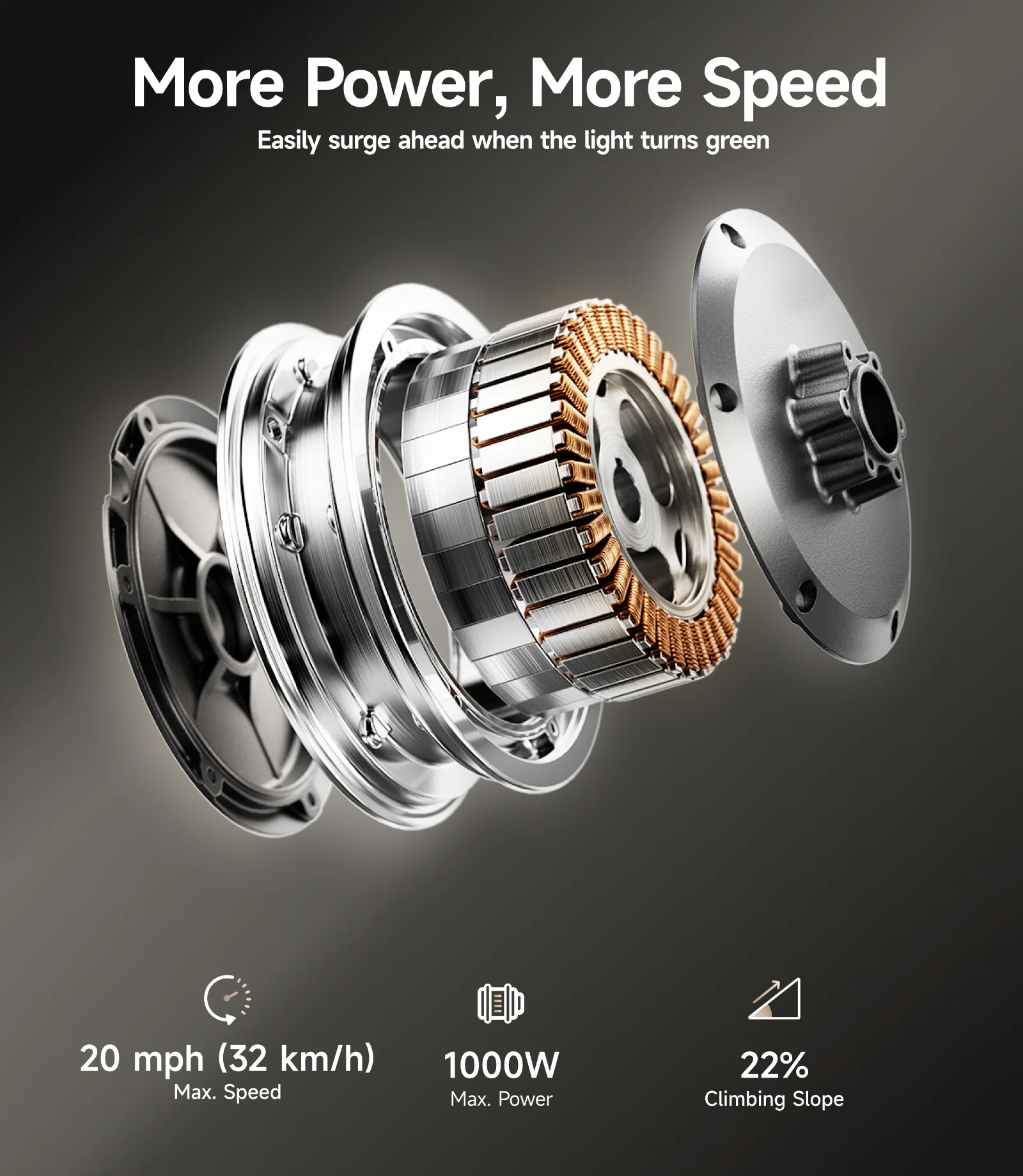 20 MPH Speed & 22% Hill-Climbing Power for Effortless Rides