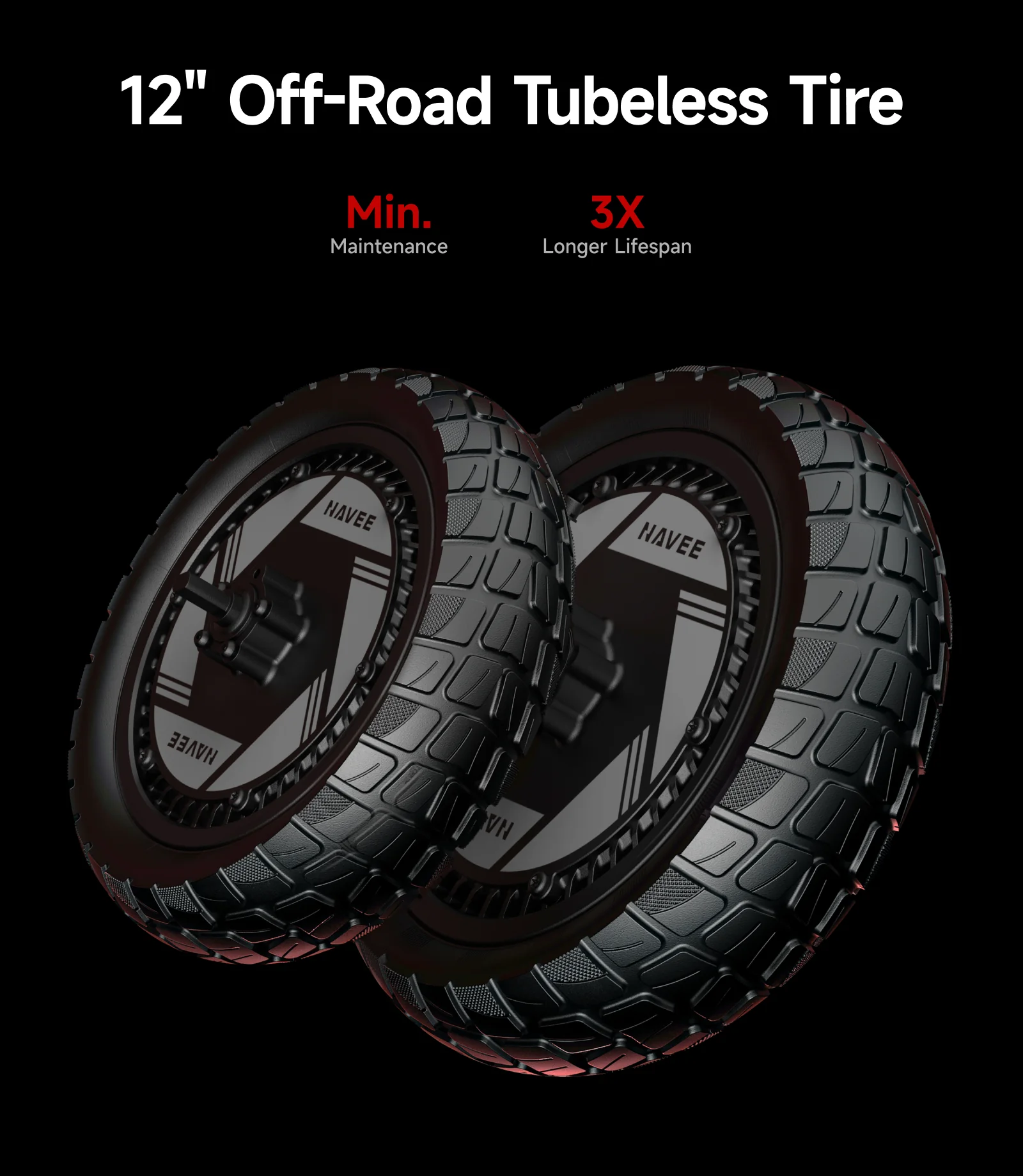- Engineered for rugged terrain, these tires resist flats and friction, while the wet-grip tread keeps every ride safe — even on rainy days.