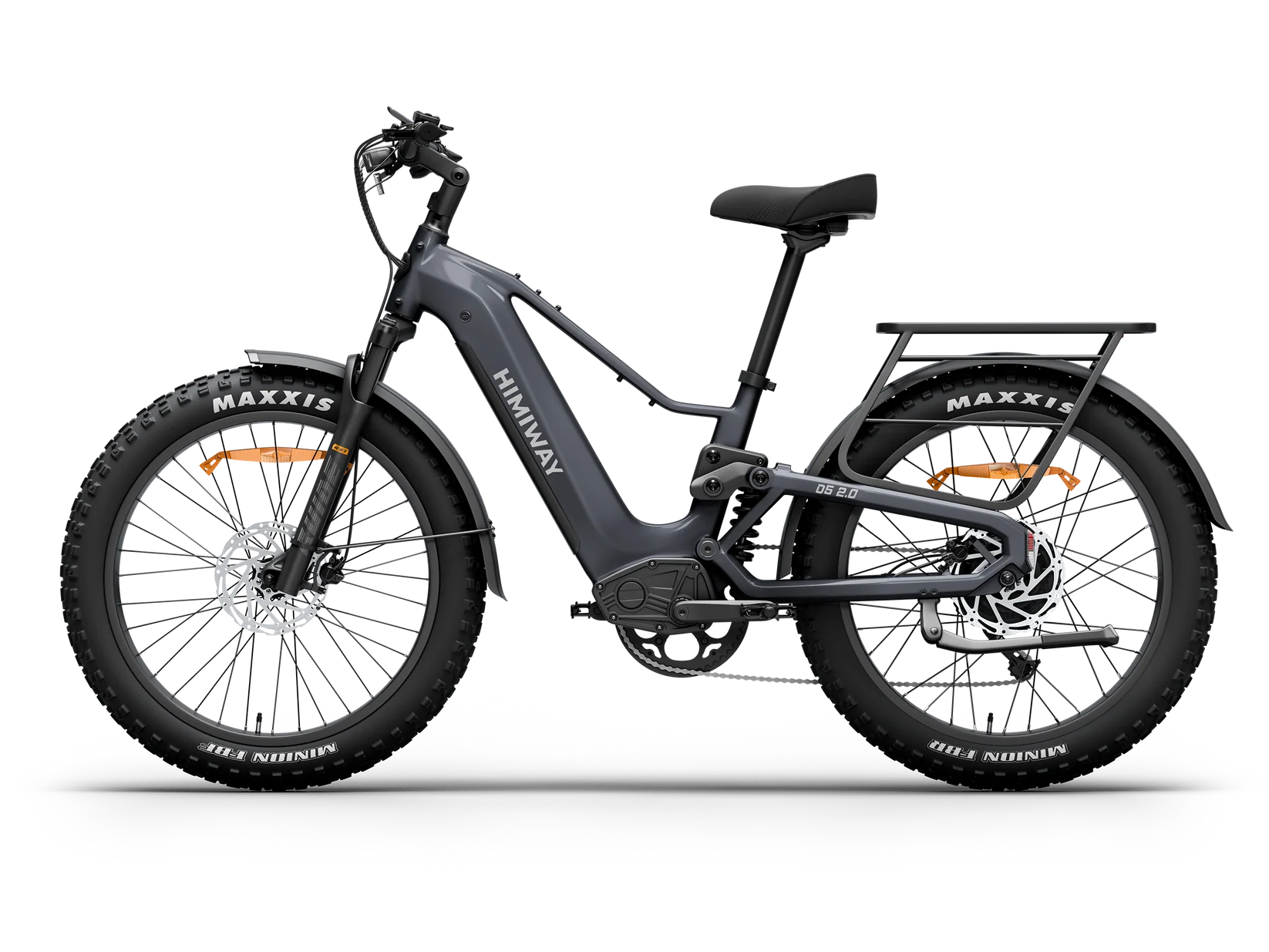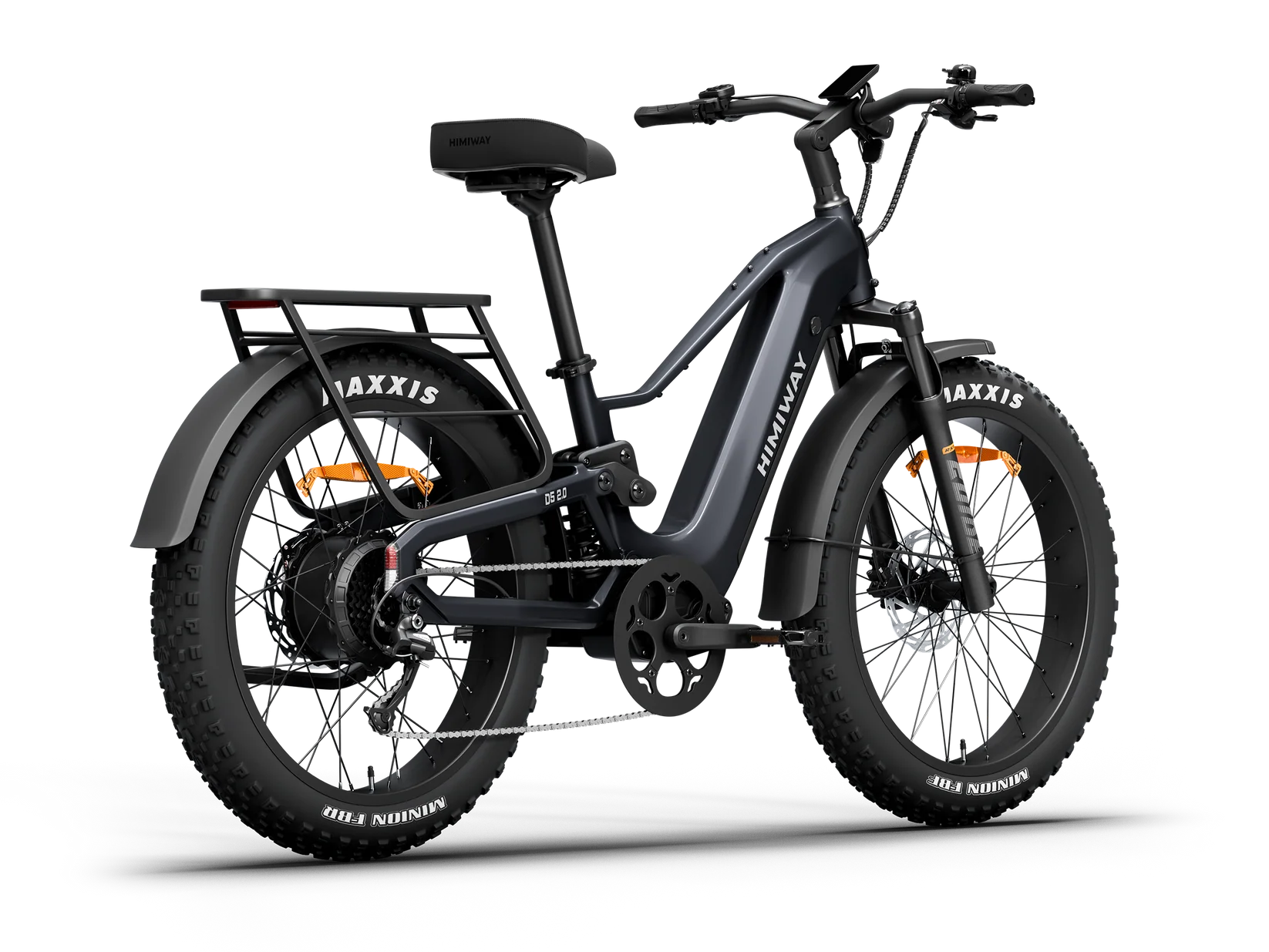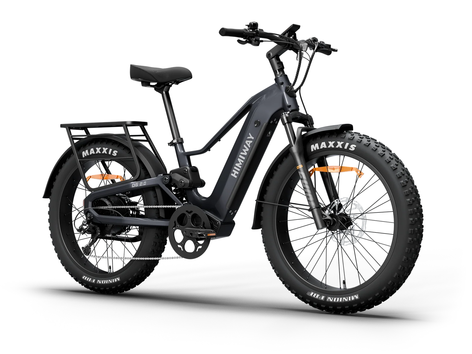The Himiway D5 is a rugged all-terrain fat tire eBike designed for power, comfort, and utility. Featuring a 960Wh battery and a 750W geared hub motor with torque sensor, it delivers 60-80 miles of range under pedal assist, while wide 26×4″ tires offer stability across sand, snow, or muddy trails. Hydraulic disc brakes provide confident stopping, and the robust frame supports up to 400 lb payload capacity. Whether commuting, hauling gear, or exploring off-road, the D5 balances strength with rideability, giving riders a versatile machine built for both adventure and daily utility.