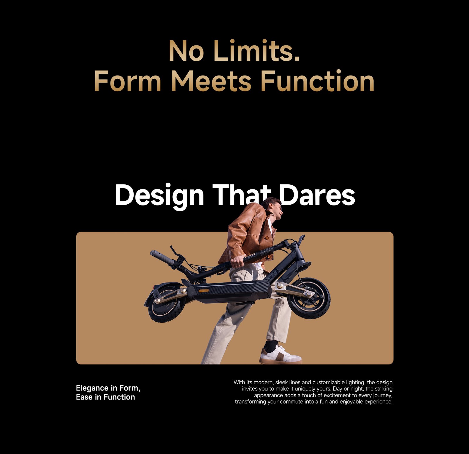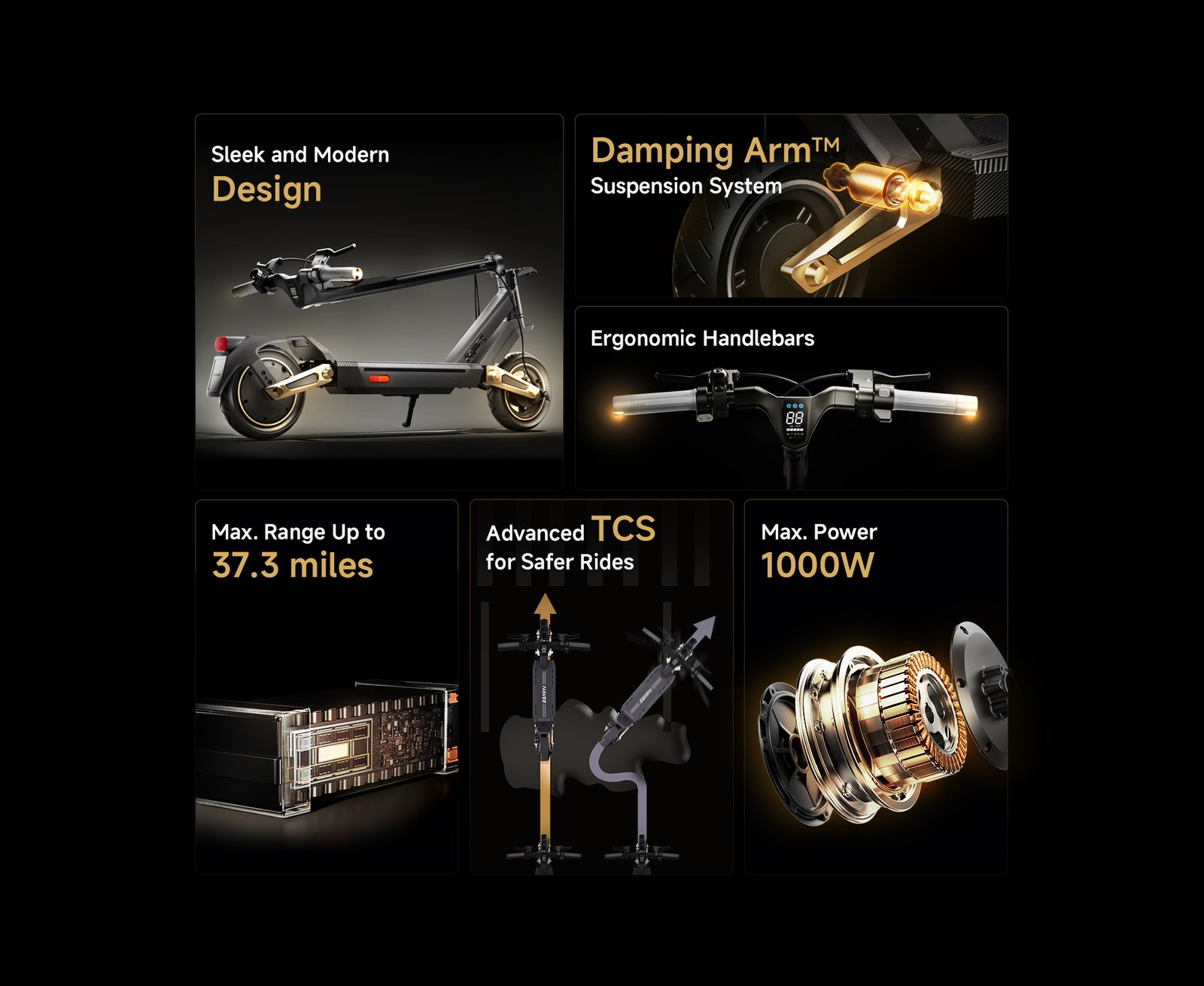 | Riding Modes | Pedestrian (6 km/h), Standard (20 km/h), Sport (25 km/h) |